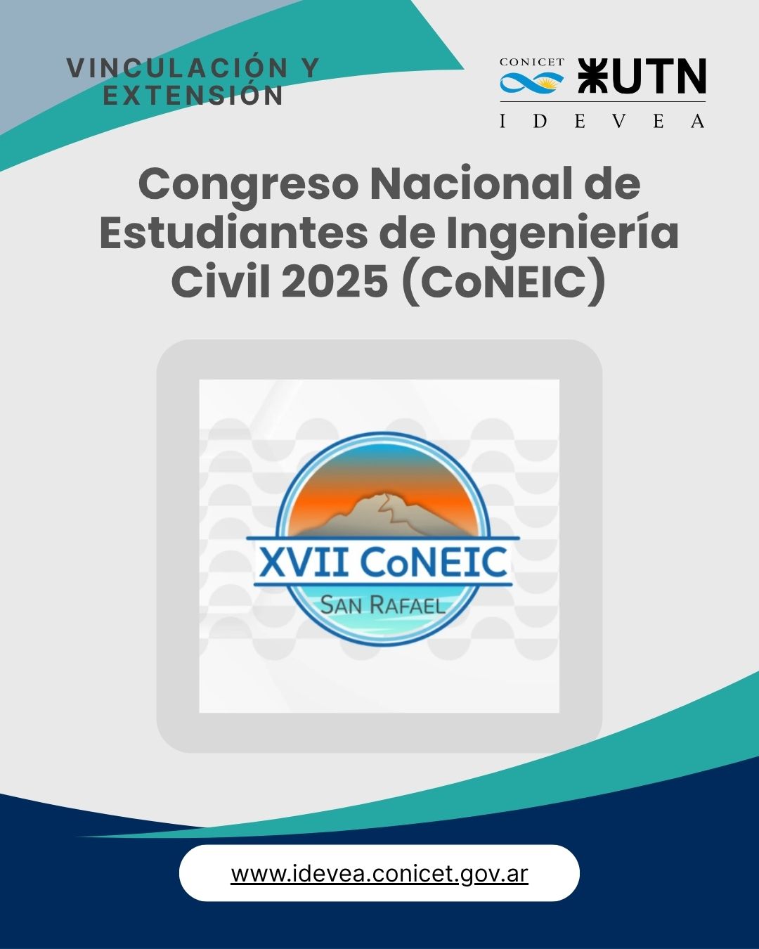 En el congreso participaron más de 1000 estudiantes de distintas regionales de UTN. Desde IDEVEA se ofrecieron talleres como parte de este importante encuentro buscando tender puentes entre la investigación científica y la ingeniería: "Intersecciones entre Paleontología e Ingeniería Civil: fósiles, patrimonio y territorio" (Coordinado por Verónica V. Vennari, Ignacio Maniel, Javier Guevara Lucero, Soledad Vázquez y Marcos Jannello) y "Medición de Isótopos Estables: fundamentos y aplicaciones" (Coordinado por Armando Dauverne y Gisela Quiroga).